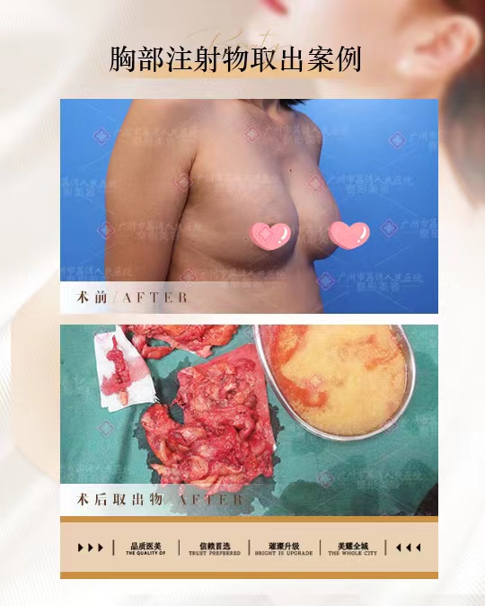 在注射不久后,奥美定事件爆发了,刘女士也知道奥美定并发症的事情,但是因为奥美定丰胸的效果实在是太好了,刘女士一直舍不得取出,就这样一直拖延取出。直到去年,刘女士的胸部开始出现鼓包,并且局部发红、发痒,还时常感到疼痛,刘女士联想到会不会是奥美定并发症出现了,内心很担忧,便打算去到广州市奥美定修复技术研究院(原广州荔湾区人民医院)检查,经过一番检查后才得知,是奥美定并发症爆发了。